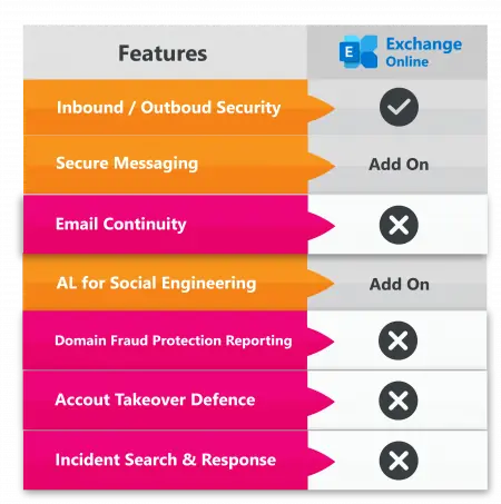 Relying on security features in Microsoft Exchange is not comprehensive enough to keep enterprises away from cyberattacks. Microsoft Exchange Online includes only basic inbound and outbound email security; for advanced email protection, enterprises need to add-on features in Microsoft 365 or look to 3rd party cybersecurity solutions.